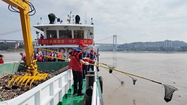 重庆机关党员干部在长江流域清漂功课现场。市委直属机关工委供图