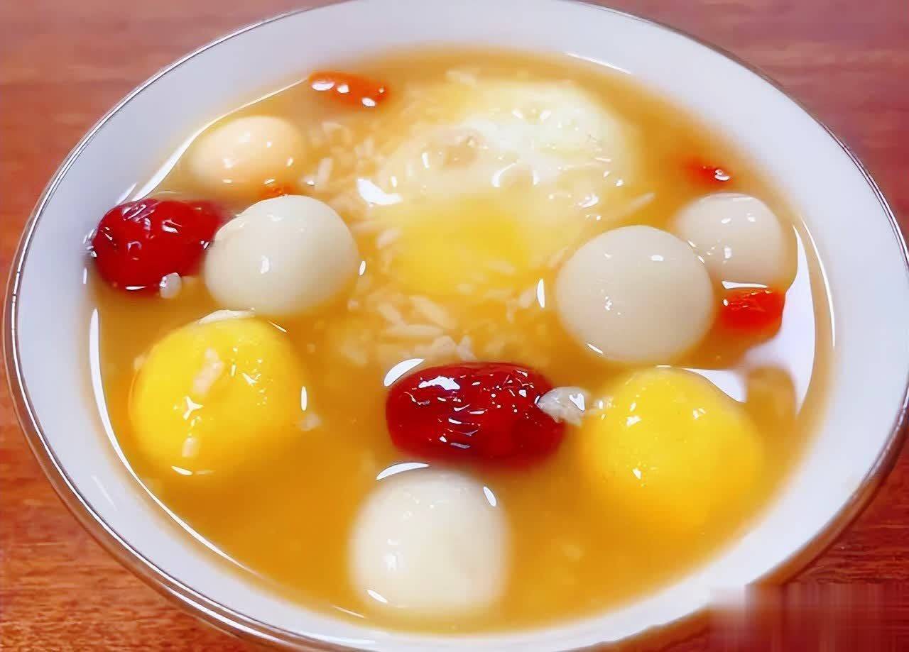 一锅热热闹闹的醪糟鸡蛋汤就作念好了,盛到碗里,神色确凿面子:淡黄色的汤底,内部浮着白白的小圆子、红红的枣子和枸杞,还有圆圆的荷包蛋。热气带着醪糟特有的香气和红糖的甜香扑鼻而来,还没喝,总计这个词东说念主就还是以为柔和起来了。