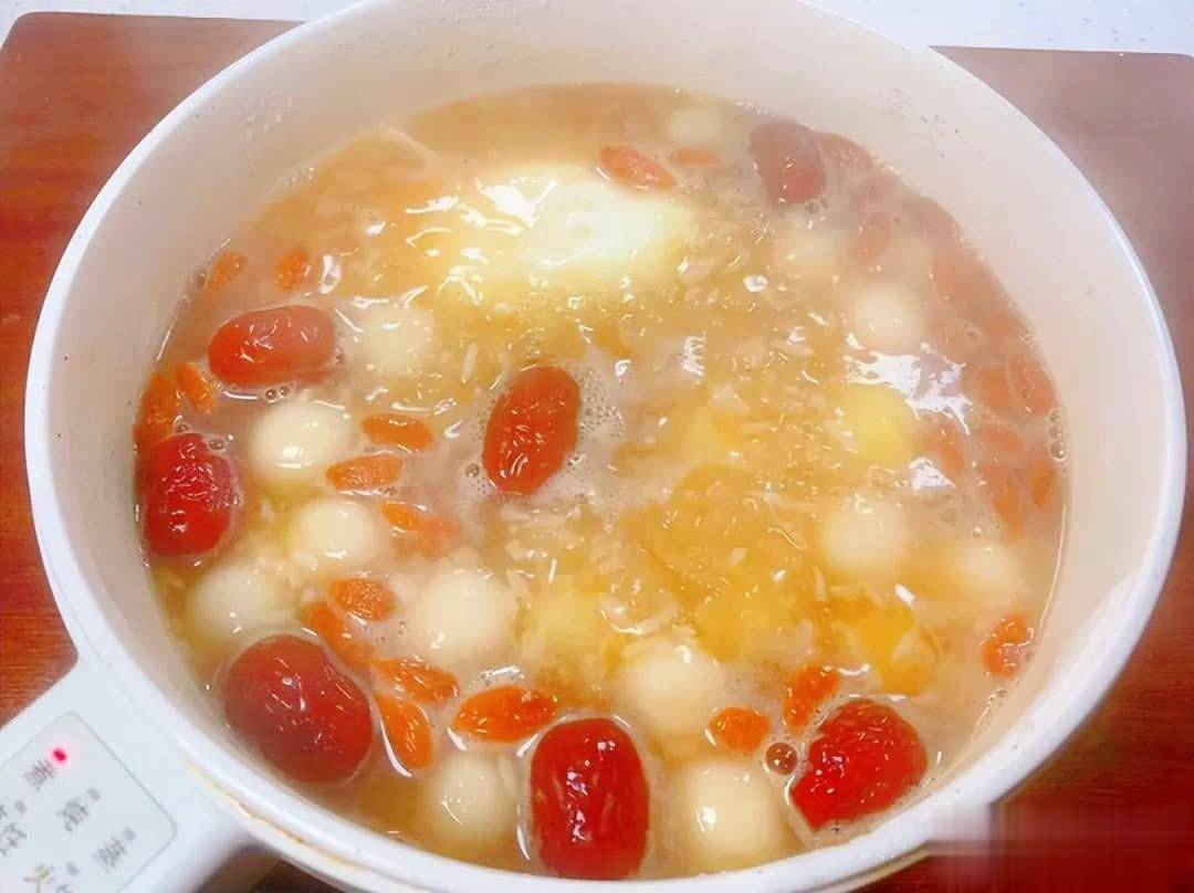 第二步:锅里加水烧开,先放入红枣和小圆子,小圆子下锅后会千里底,等它们一个个浮起来,就讲明熟了。这时候不错加入黄米汤圆(要是你准备了的话),一说念煮到浮起。