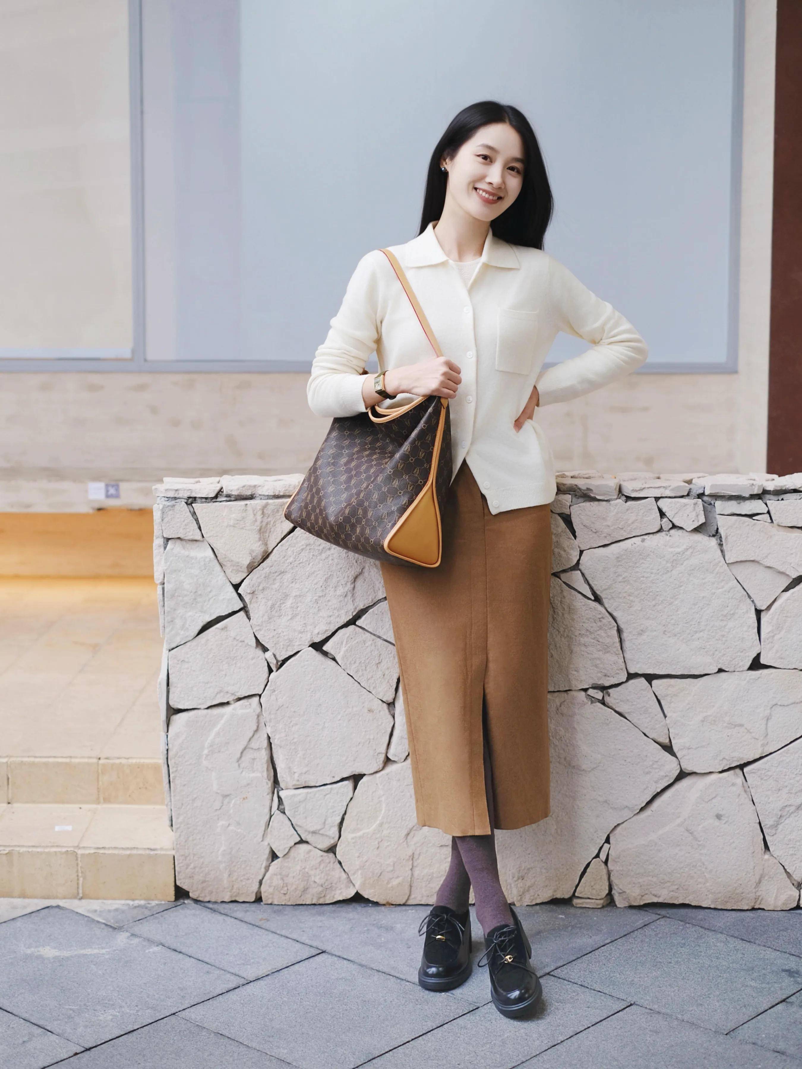 直筒的半身裙如实能让下半身变得更运动,无论是梨形肉体或者是胯宽腿粗有小肚腩的女性,穿上这种直筒半身裙就能让肉体变得很运动。再加上收腰的白色竭诚开衫,就能呈现出辗转有致的肉体。