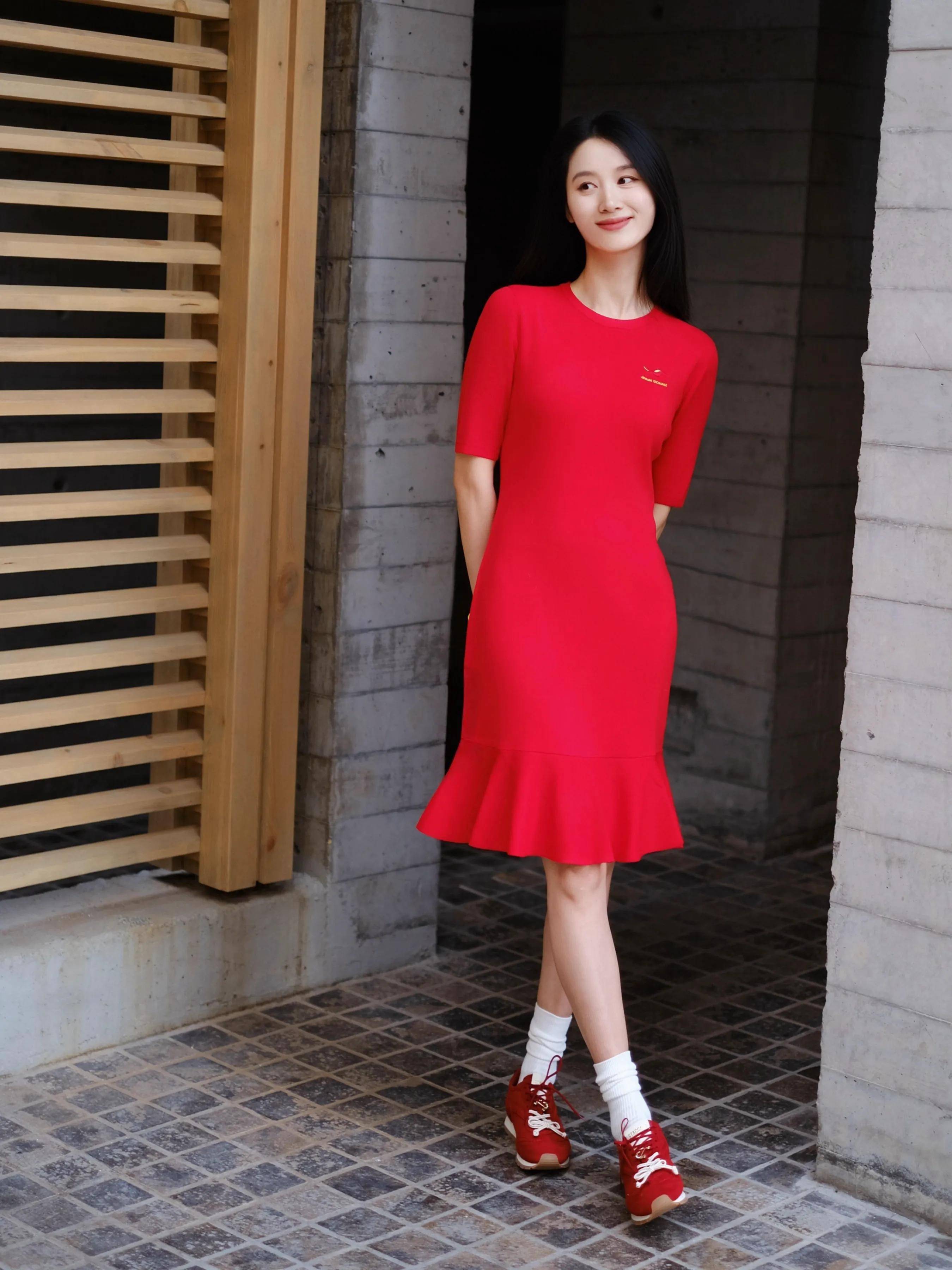 过年过节的时期段,念念让我方的打扮更喜庆的情况下,你还不错选拔一条高腰收腰款的鱼尾连衣裙,脚踩一对红色的单鞋,这么的打扮,谁见了你皆会夸你一声真漂亮。