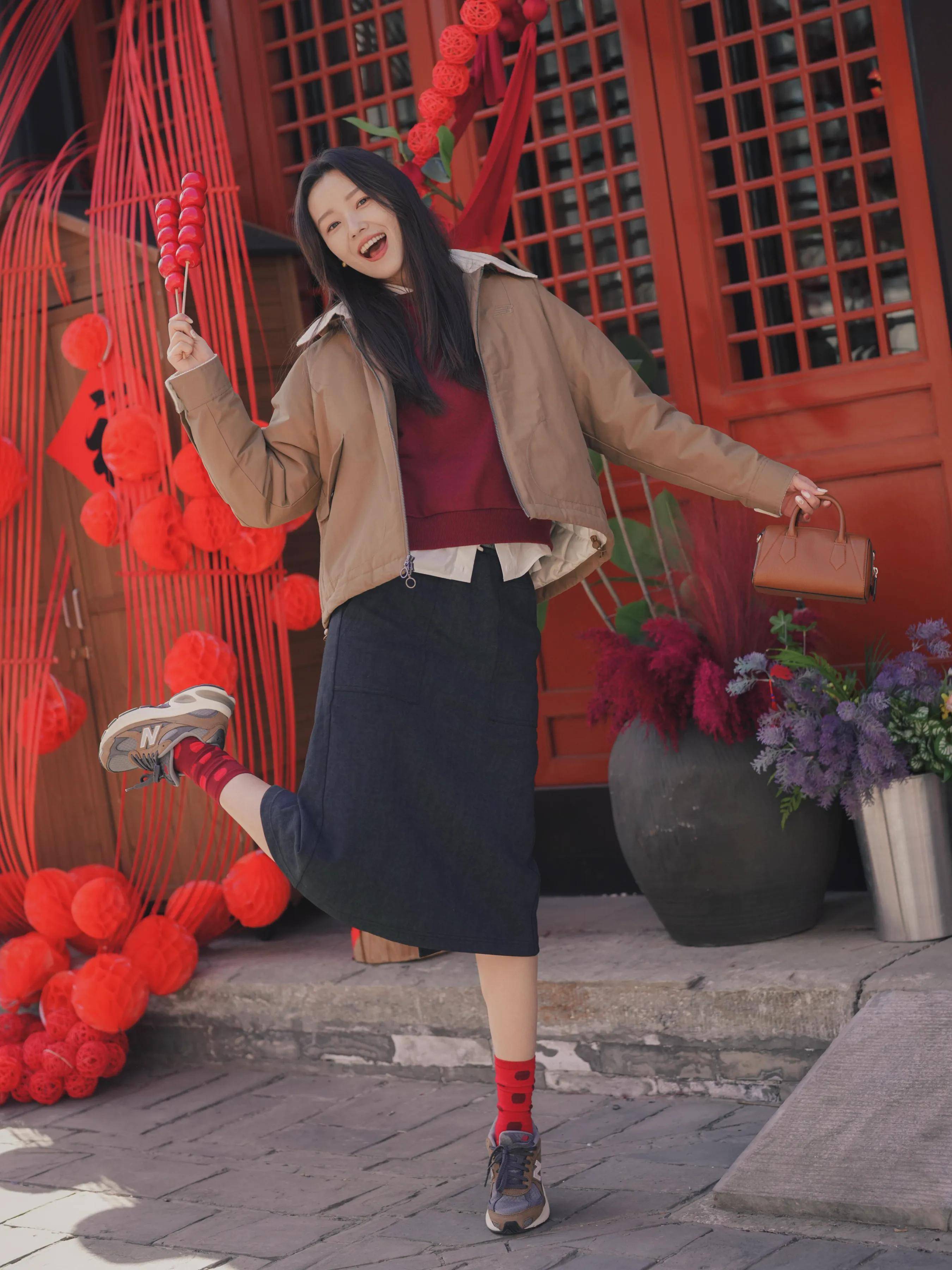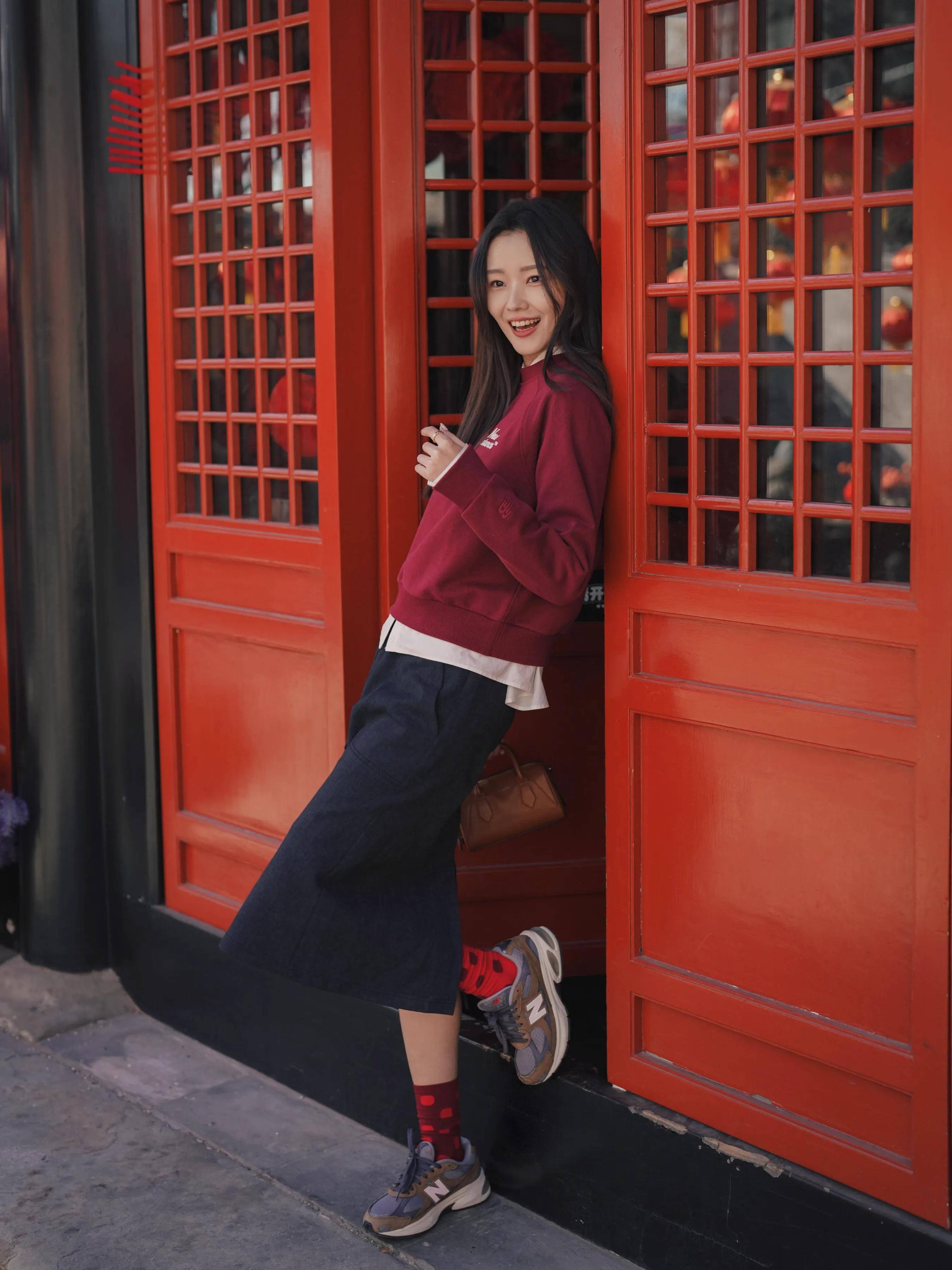 念念要在春节让我方变得更喜庆况且失业洋气,我们还不错选拔一件红色的圆领卫衣,内搭白色打底衫,再加上藏蓝色的直筒半身裙,脚穿一对老爹鞋,这么的穿搭既洋气又朝气繁盛。