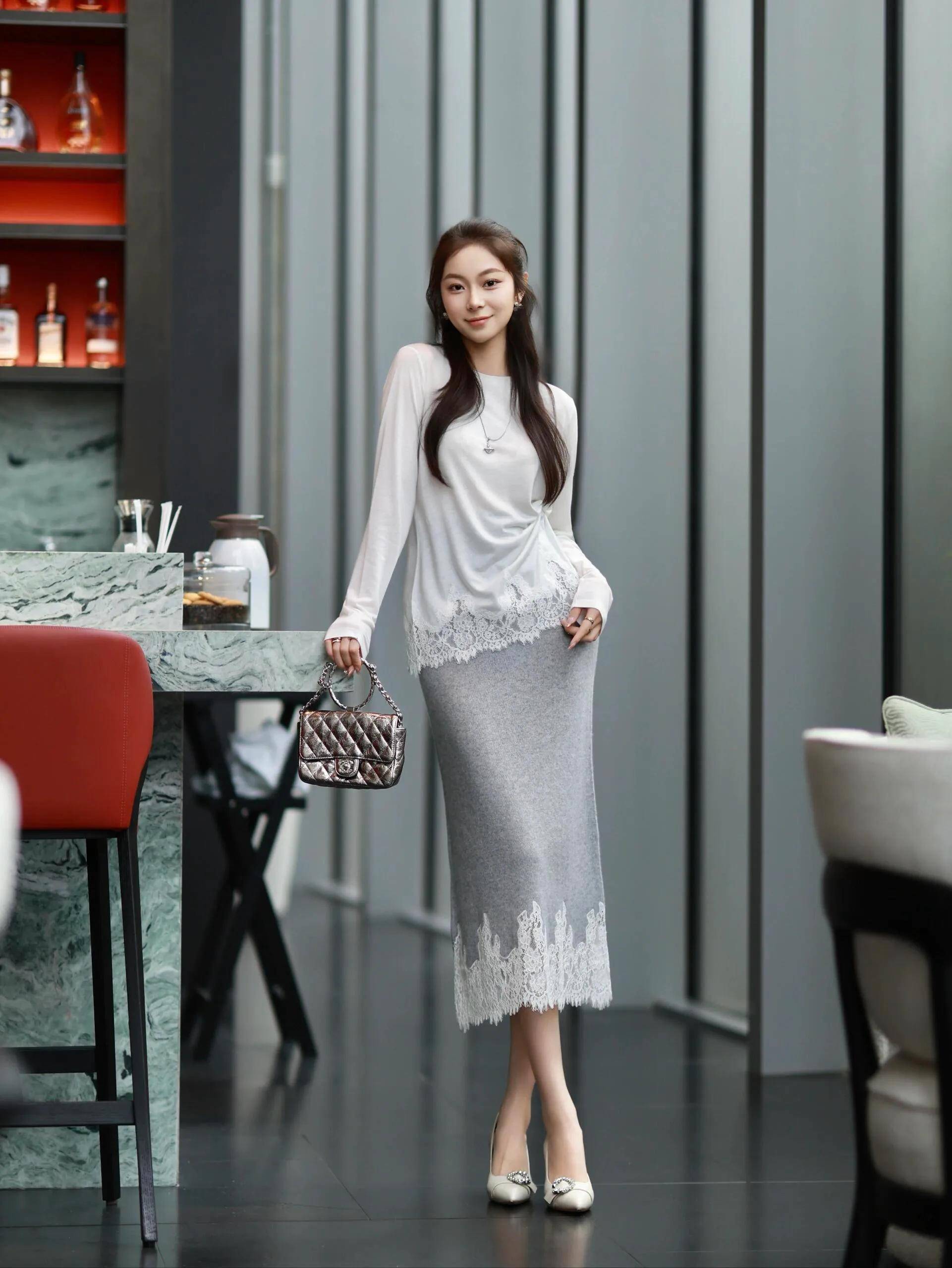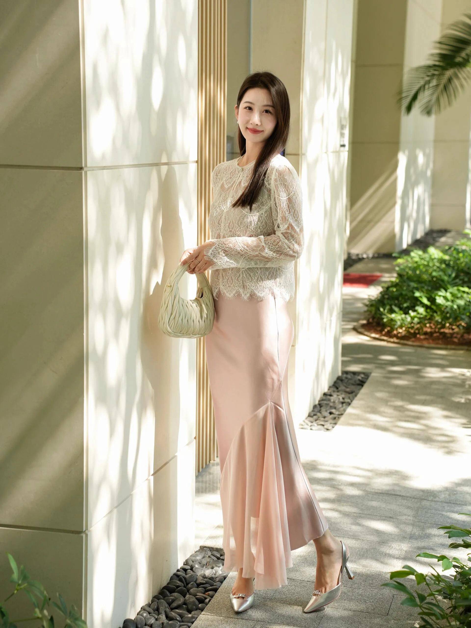 肉体高挑纤瘦,如实不错选拔一条竭诚包臀裙,搭配一件白色的圆领竭诚上衣,脚穿一对浅口的高跟单鞋,这么的穿搭酿成了一种小姨风的前锋感。亦然当下相比流行的一种打扮阵势,多了一种轻熟的韵味,优雅又大气。