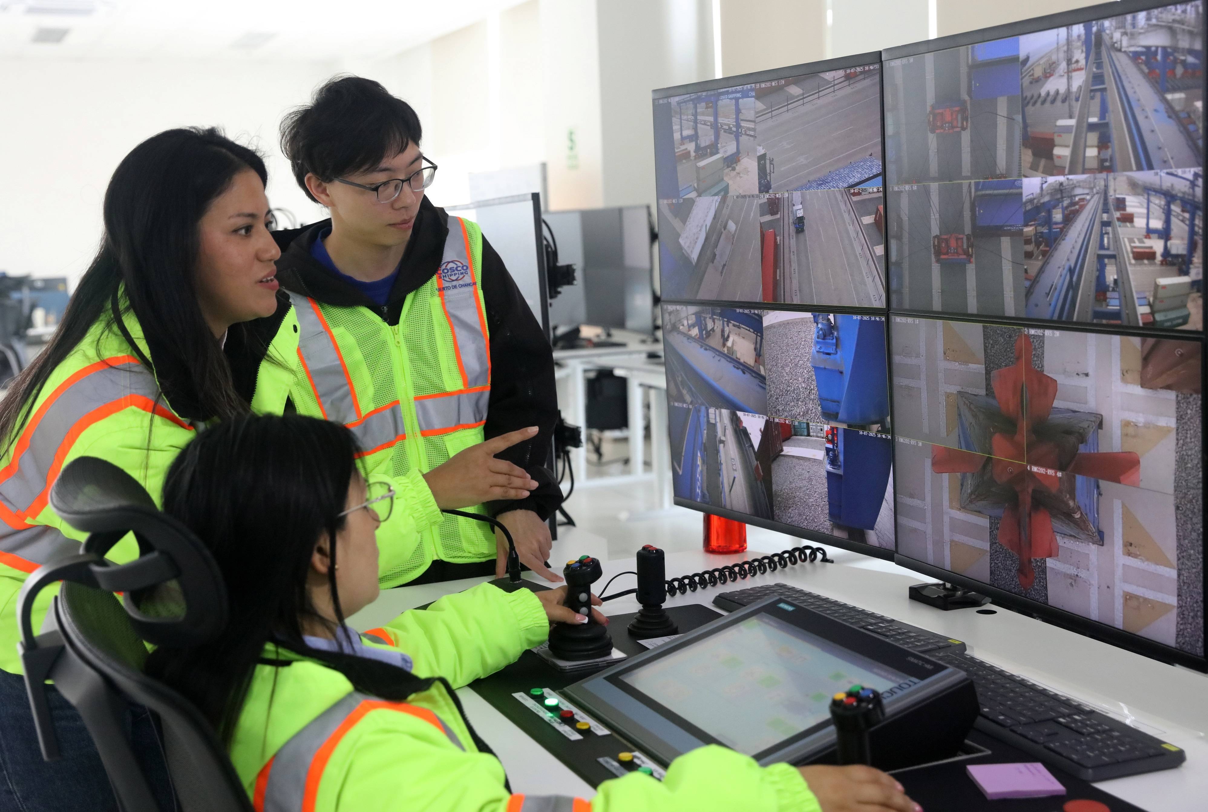 船埠操作区内,智能驾驶集装箱卡车沿预定门道缓缓停泊,静候在整皆码放的集装箱旁,轨谈吊精确执取集装箱后将其轻放于智能卡车上。中央甘休室内,船埠功课区内的通盘业务动态及时呈当今口岸数字孪生轮廓能源管控平台的超大屏幕上。秘鲁轨谈吊操作员亚迪拉·索托凝念念扎眼我方眼前的屏幕,指尖悬于甘休台前,随时不错介入操作,确保历程顺畅连络。